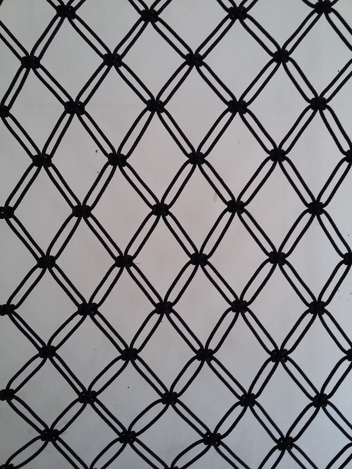 ตาข่ายเชื่อกถัก เป็นงานตัวอย่าง ถักด้วยมือ Handmade ทำจากเชื่อก Polypropylene (PP) ขนาด 8 มม.เป็นเชื่อกอเนกประสงค์ มีความคงทนต่อสภาวะอากาศ