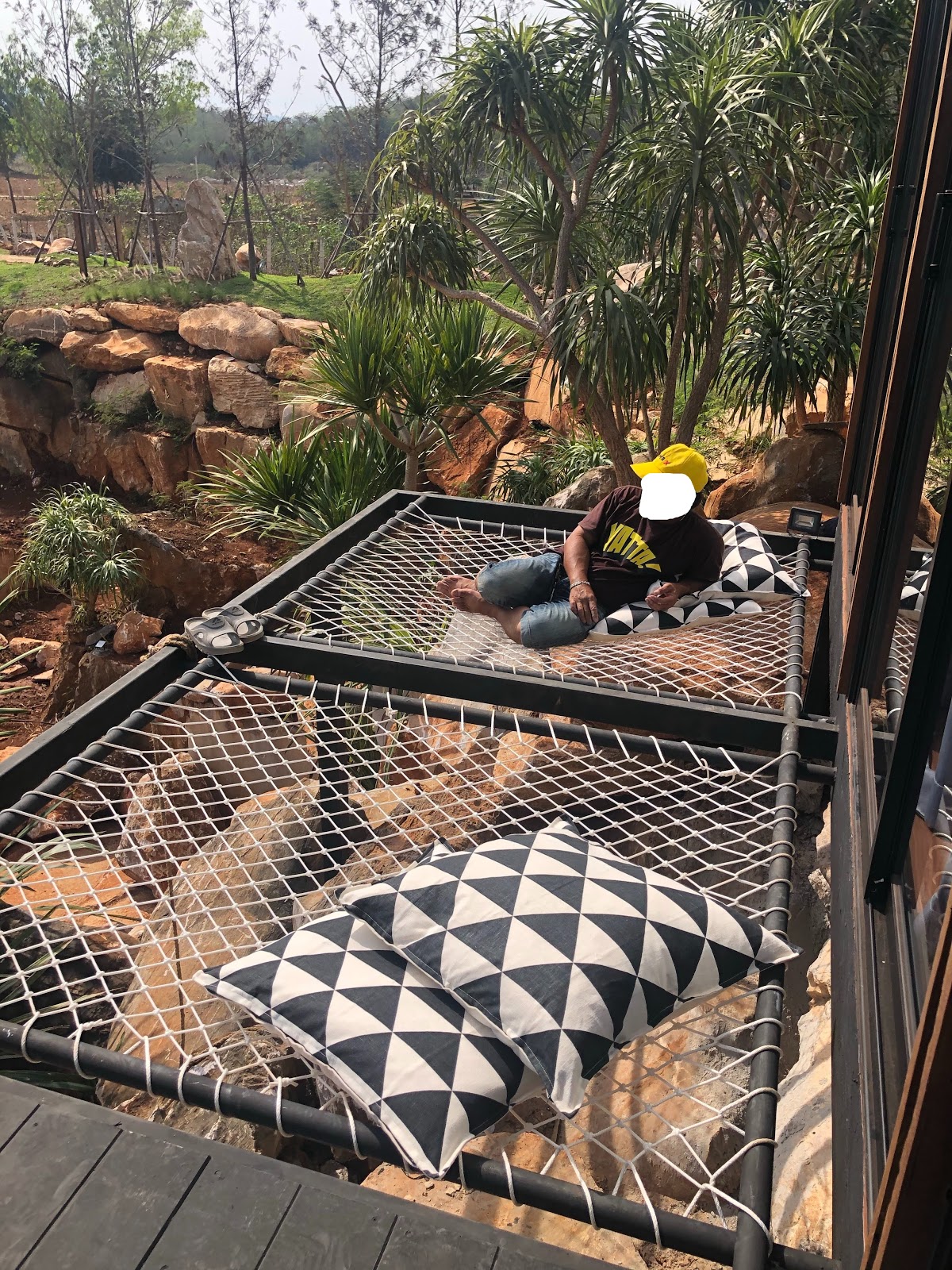 นั่งนอนเล่นบนตาข่ายเชื่อก |