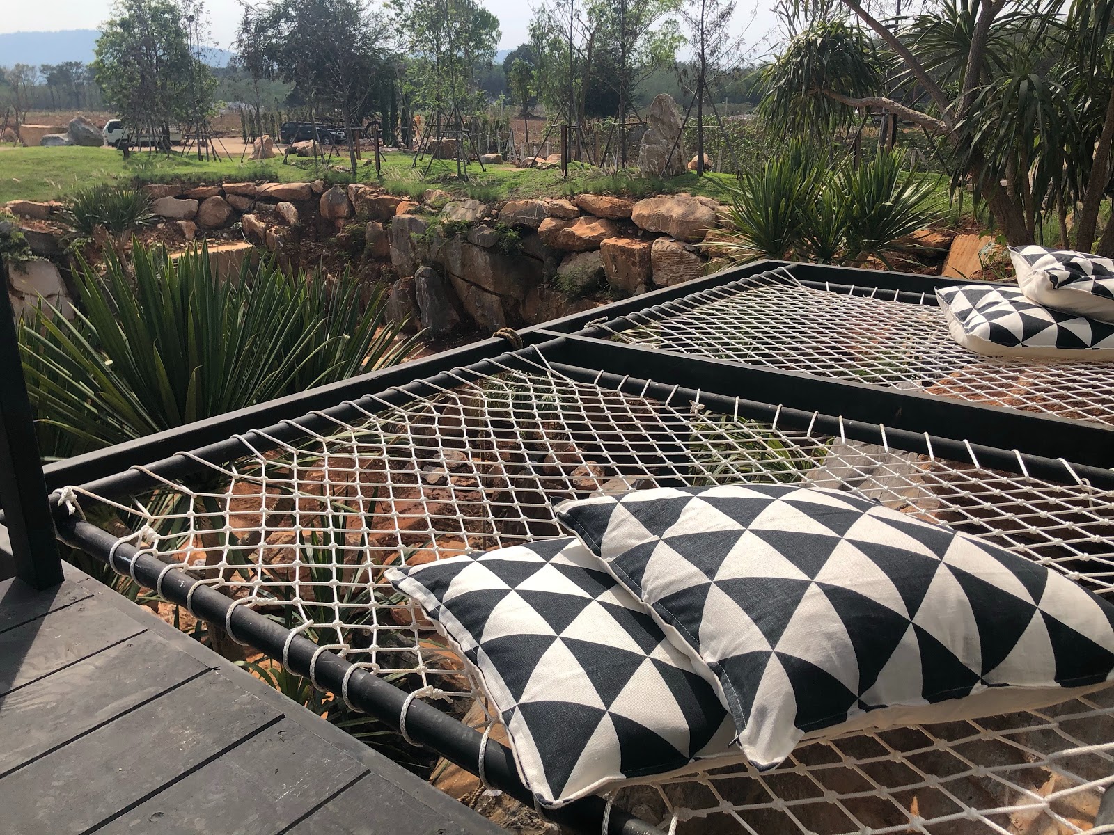 ทำตามขนาด สำหรับใช้งานตบแต่งภายในหรือภายนอก พื้นที่ว่างนั่งเล่น หรือขึงนอนเป็นระเบียง ในสนาม ริมน้ำ สัมผัสความรู้สึกที่แปลกใหม่บนตาข่ายเชื่อก