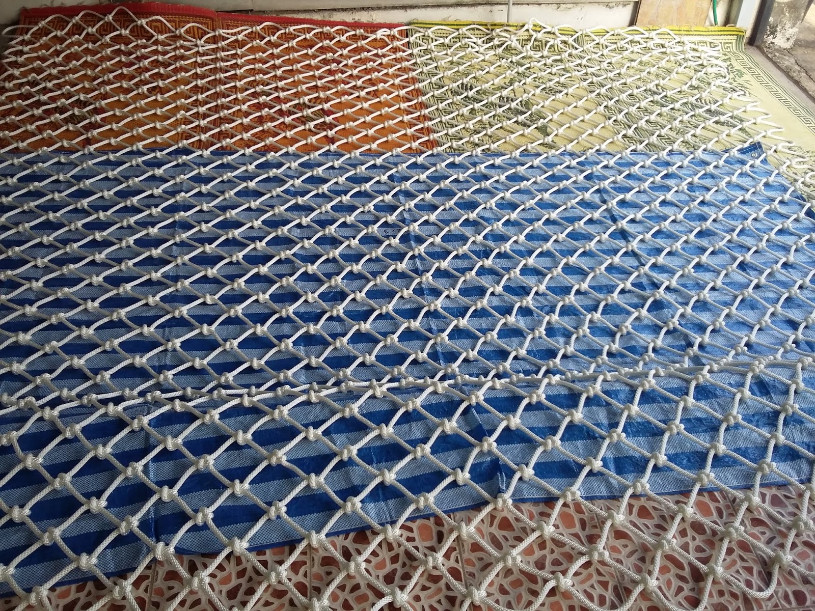 งานถักตาข่าย แบบเปลนอนตาข่ายหรือนั่งเล่น สำหรับตบแต่งภายในบ้านที่อยู่อาศัย เป็นงานถักด้วยปมเงื่อน Knote ใช้เชื่อกถัก Poleyester