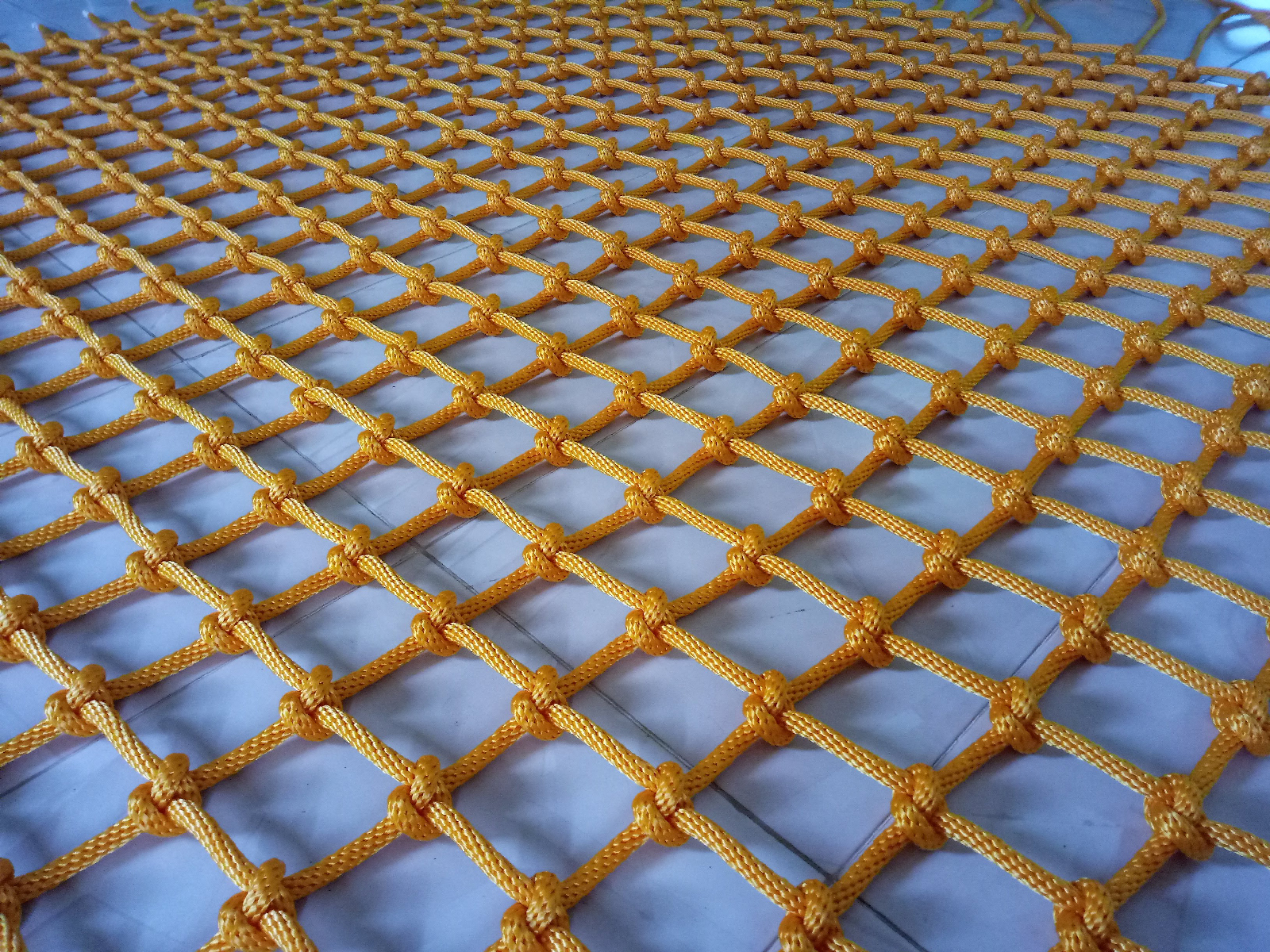 งานถักตาข่ายปมเงื่อนทำตามขนาด สำหรับใช้งานปีนไตร่สนามเด็กเล่นและตบแต่งภายในหรือภายนอก ให้ความสวยงามจากปมเงื่อนที่ถัก ทั้งให้ความแข็งแรงรับแรงดึงได้ดี พร้อมกับสัมผัสเชือกที่นุ่มไม่แข็งกระด้าง มีให้เลือกหลายสีและขนาดเชือกที่ต้องการ วัสดุทำจากเชื่อกถัก