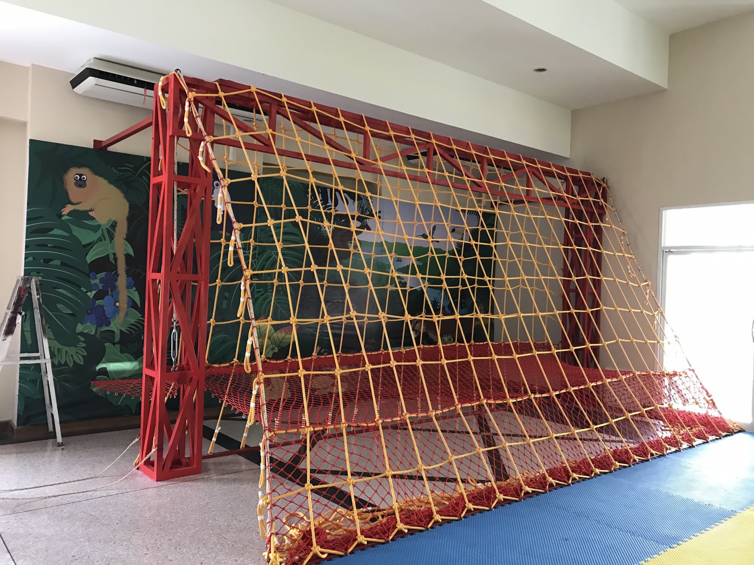 | งานติดตั้งตาข่ายปีน กับตาข่ายกันตกสีแดง |